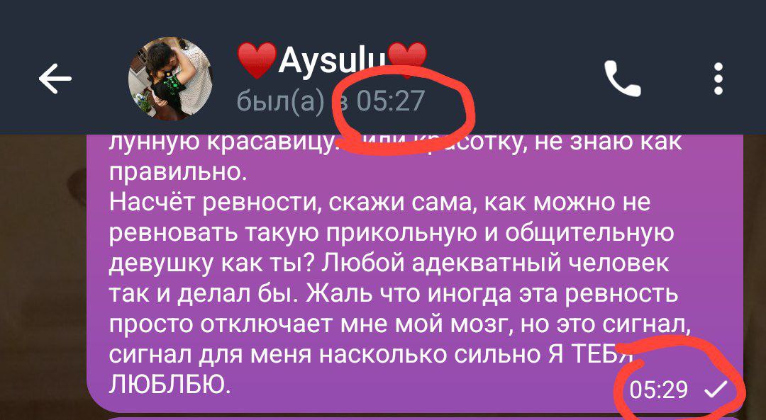 Насчёт ревности, скажи сама, как можно не ревновать такую прикольную и общительную девушку как ты? Любой адекватный человек так и делал бы. Жаль что иногда эта ревность просто отключает мне мой мозг, но это сигнал, сигнал для меня насколько сильно Я ТЕБЯ ЛЮБЛБЮ.