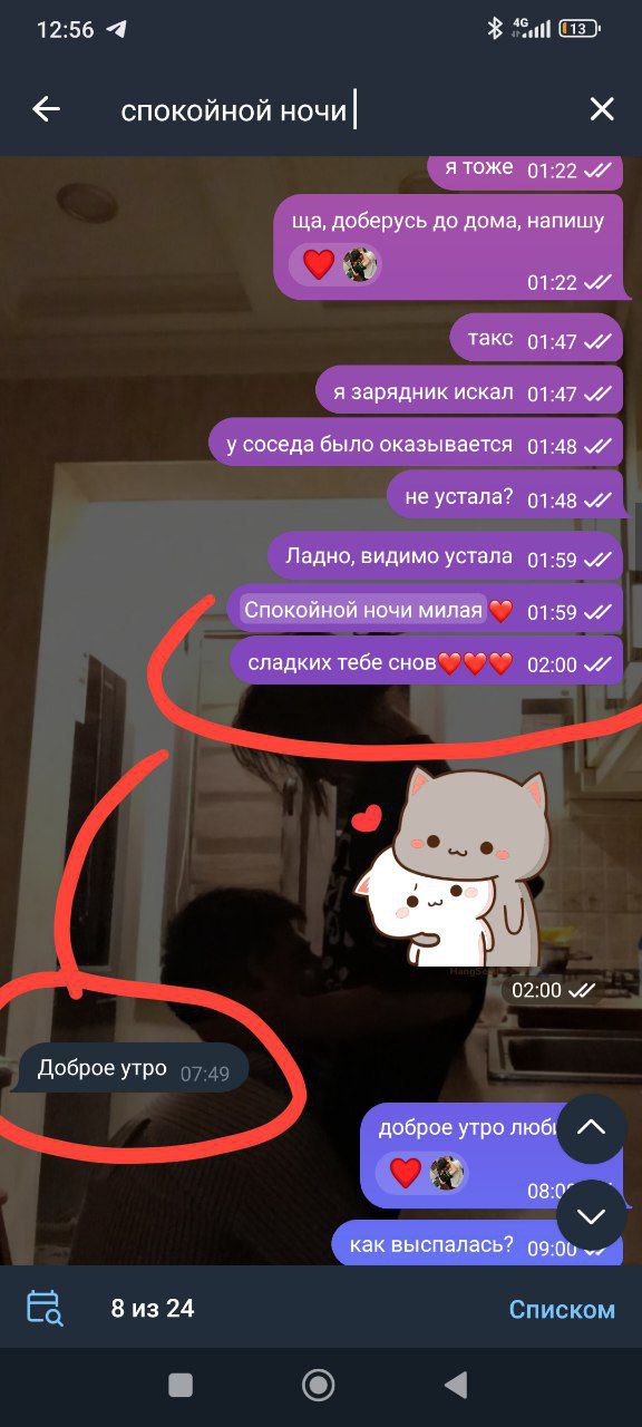Причина, почему я не написал тебе спокойной ночи, потому что я ещё не хотел на этом закончить наш диалог, я не хотел на этом закончить наш день. я не отложил телефон с рук, я просто настолько устал, что глаза закрылись а телефон просто упал с рук. И это не первый раз, я просто пишу тебе, пока есть силы. да, как-то слабо получается)